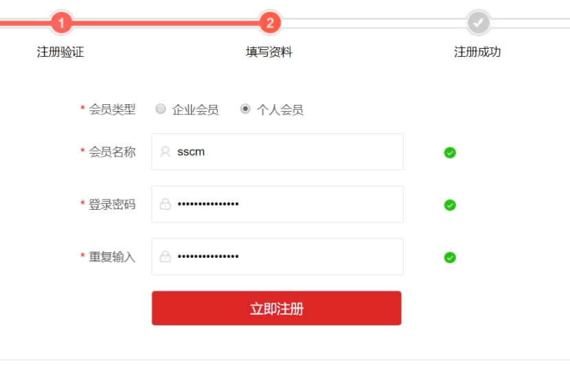 個人會員,不需要填寫公司名稱,只要會員名稱與密碼即可.但是個人會員,注冊后,是無法開通免費網站的.請注意!