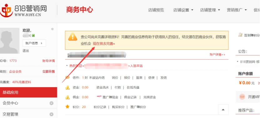 7. 首先,你需要完善公司相關資料,點擊圖示里面的現在就去完善.