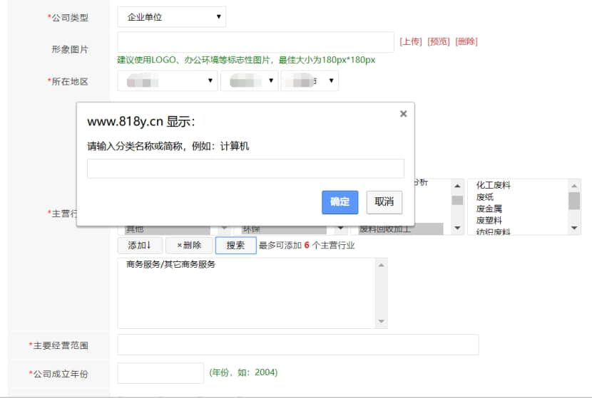主營行業,如果找不到,可以選擇搜索,輸入自己的行業,即可搜索出相關行業,如果搜索不出,可以換關鍵詞來進行搜索.