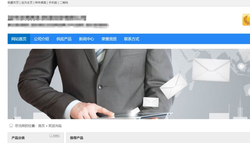 現在的網站,因為LOGO沒上傳,公司名稱邊上也沒LOGO,需要在會員中心上傳.由產品資料沒上傳,里面也是空的,需要在會員中心上傳產品.