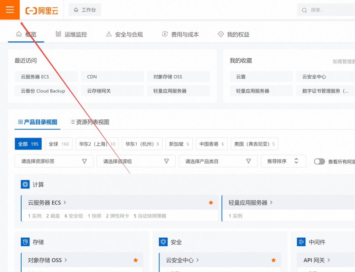1. 帳戶登陸進來后,點選控制臺
