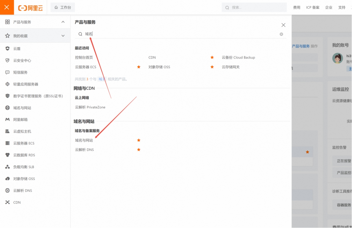 3. 點開菜單,搜索域名