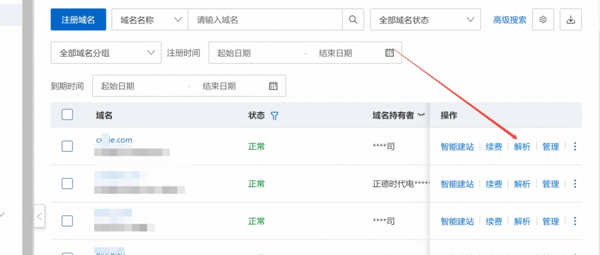 5. 找到域名,點擊解析