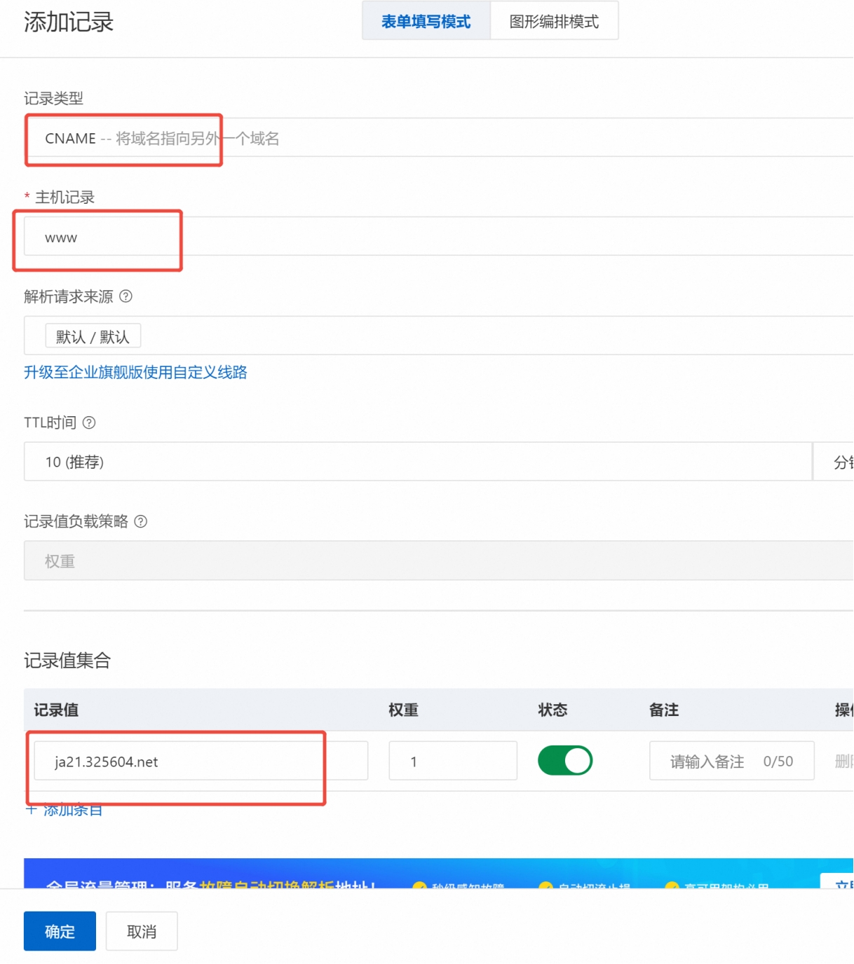 8. 選擇cname解析,www解析就完成了