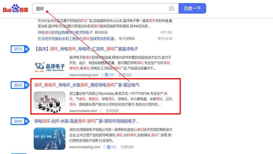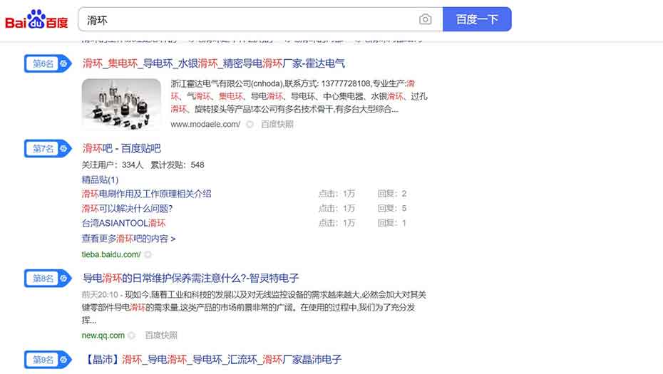 盛世傳媒為霍達提供了滑環相關的關鍵詞的搜索排名服務!